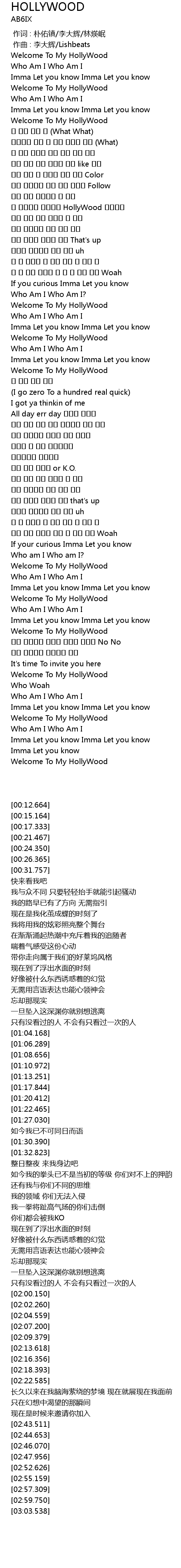 | [00:12.664] | Welcome To My HollyWood |