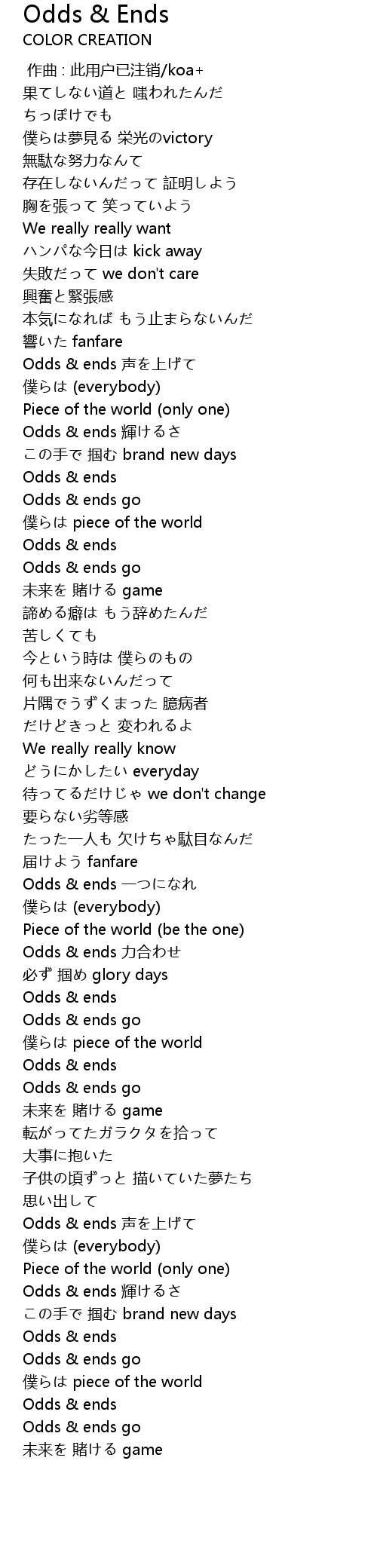 | [01:03.40] | Odds & ends 声を上げて |