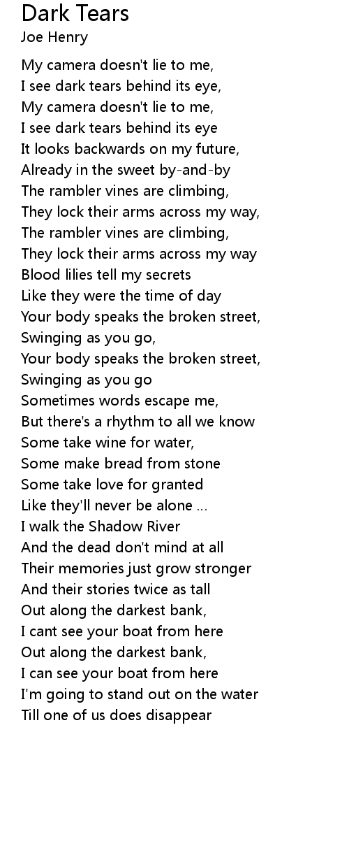 | I see dark tears behind its eye, | |