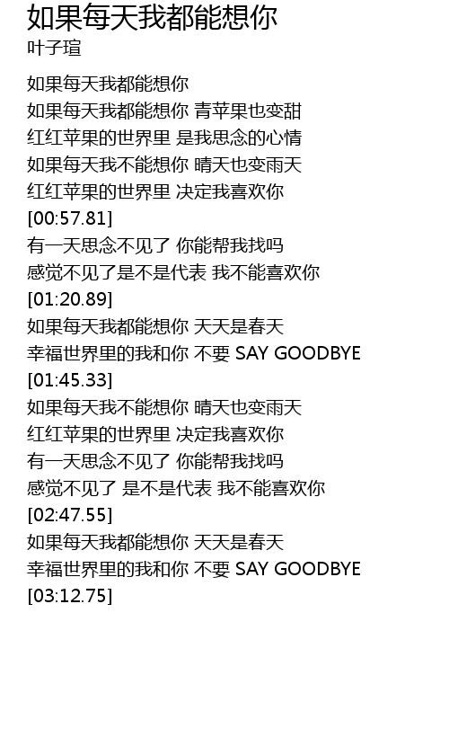 | [00:20.36] | 如果每天我都能想你 青苹果也变甜 |