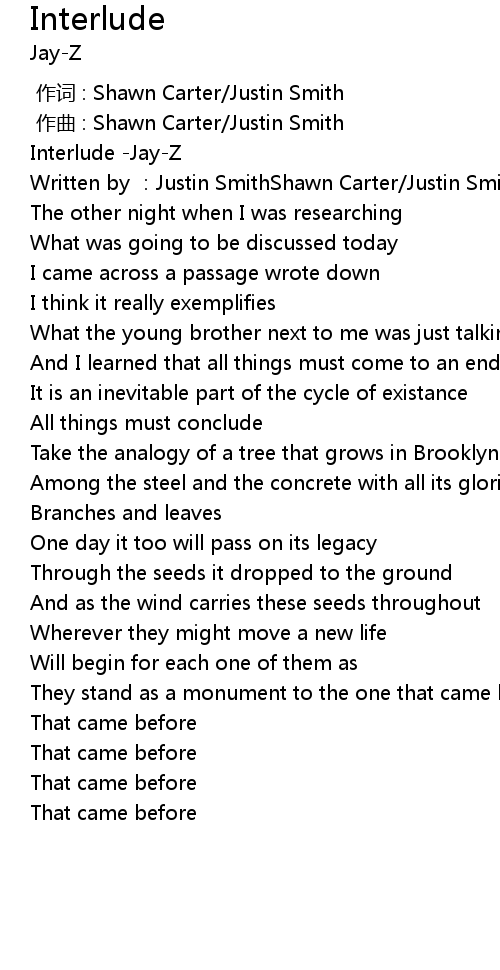 | [00:00.000] | 作词 : Shawn Carter/Justin Smith |