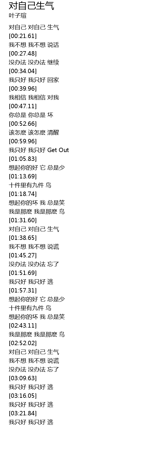 | [02:52.96] | 对自己 对自己 生气 |