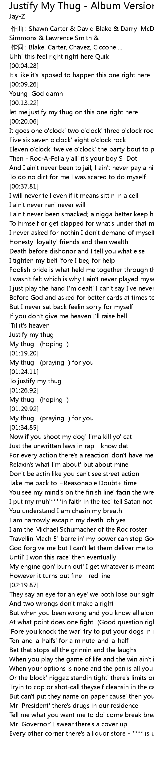 | [01:16.20] | Justify my thug |