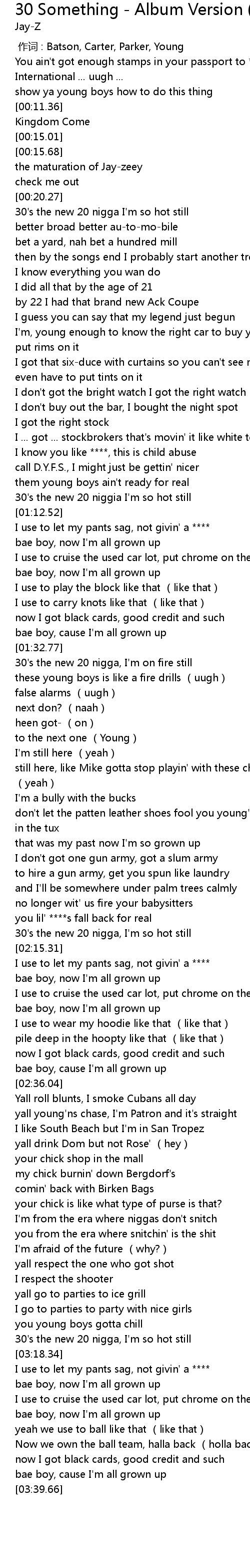| [00:16.24] | the maturation of Jay-zeey |