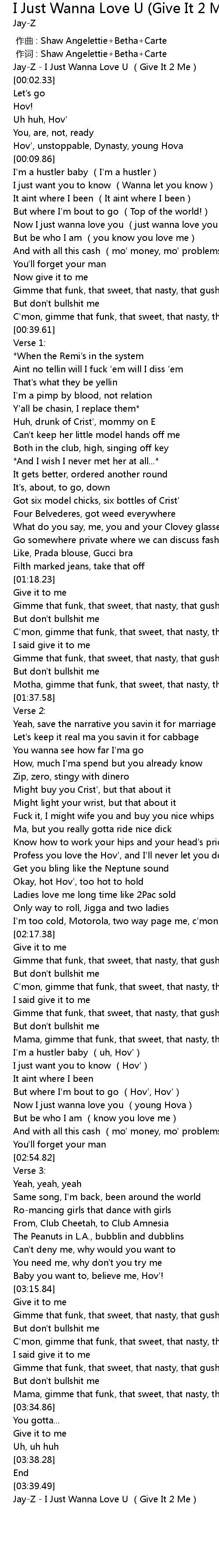 | [03:40.02] | Jay-Z - I Just Wanna Love U (Give It 2 Me) |