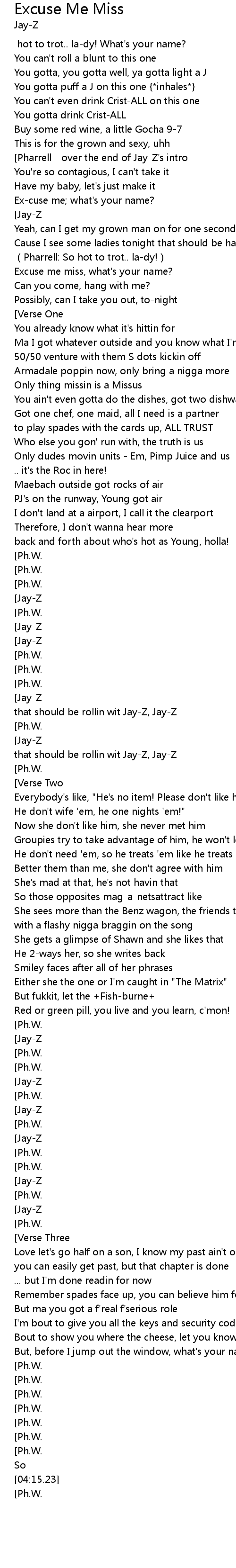 | [00:20.27][Pharrell - over the end of Jay-Z's intro] | |