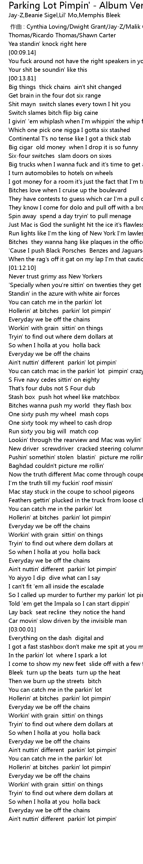 | [03:56.83] | Ain' t nuttin' different parkin' lot pimpin' |
