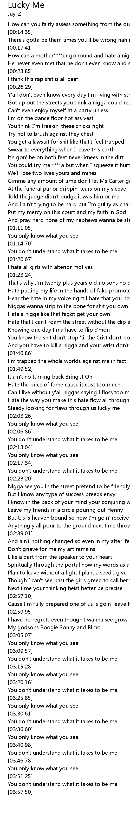 You don't understand what it takes to be me |