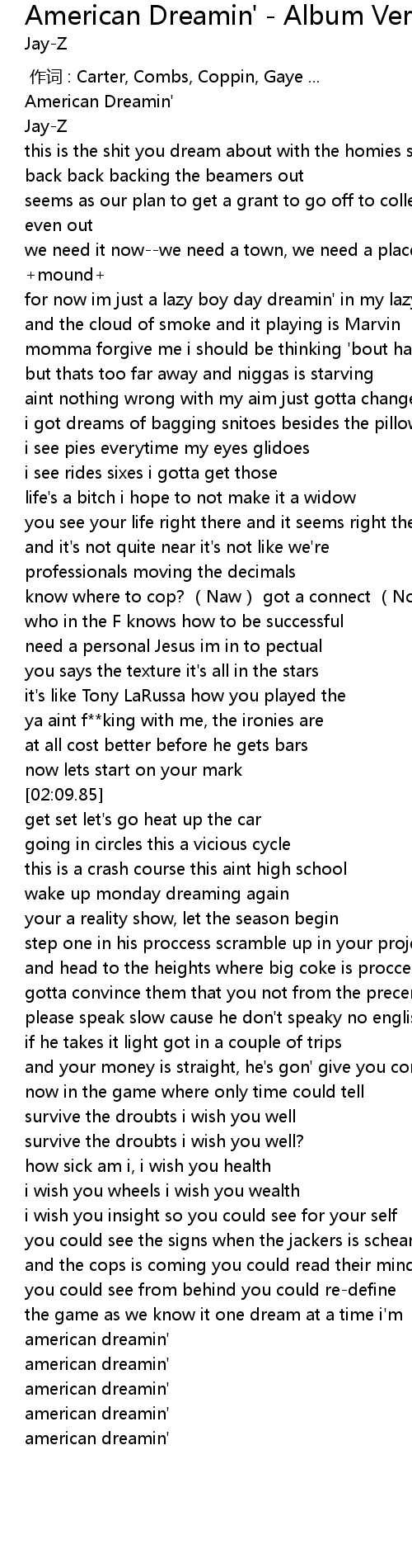 | [00:41.10] | this is the shit you dream about with the homies steaming out |