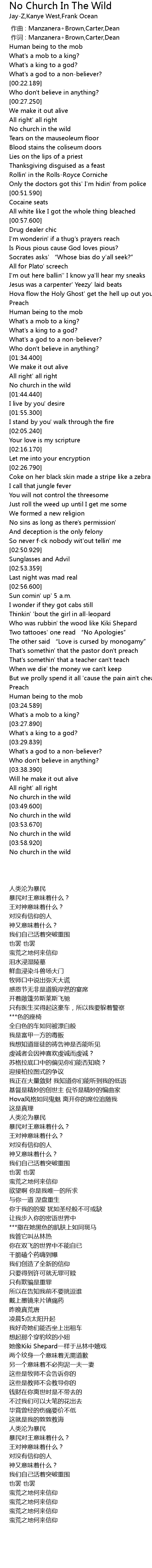 | [04:02.250] | No church in the wild |