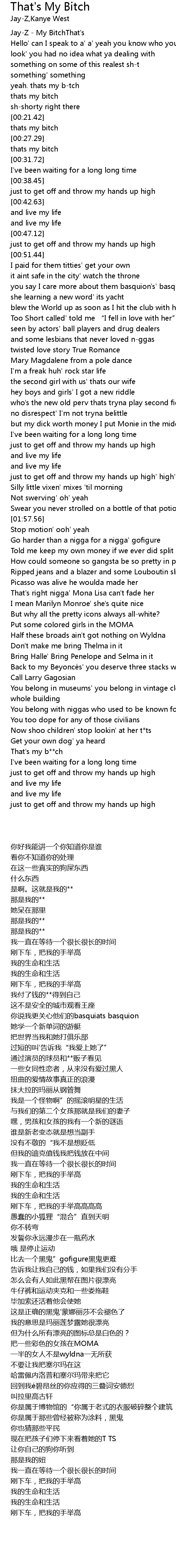 | [00:01.33] | Jay-Z - My BitchThat's |
