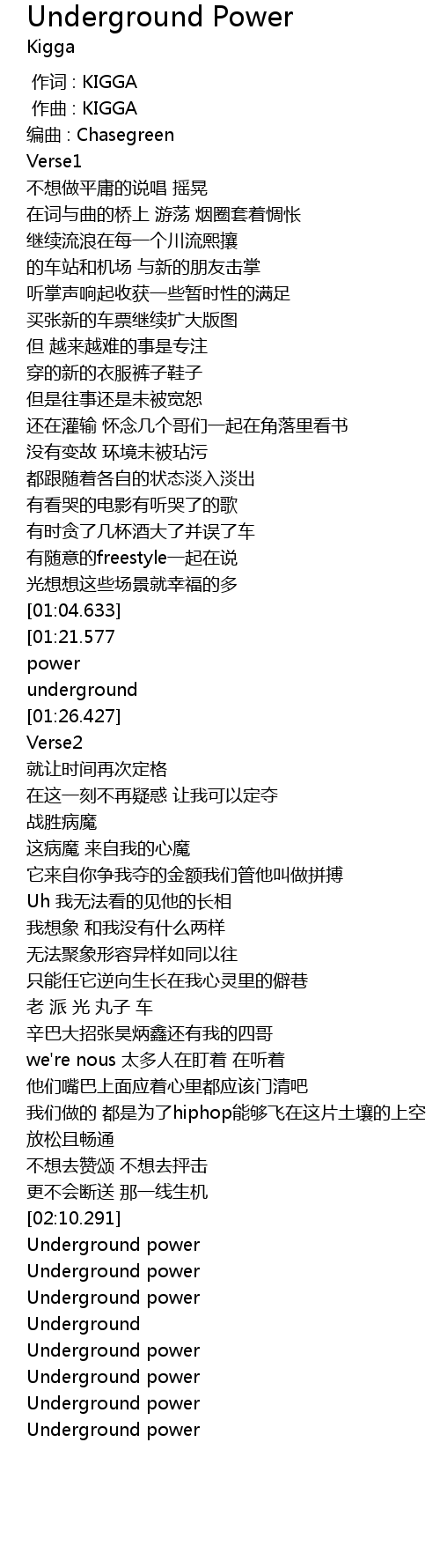 | [01:24.460][01:21.577][01:18.860][01:15.993][01:10.522][01:07.722][01:04.817] | underground power |