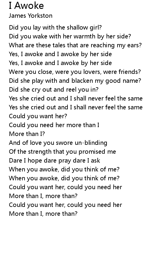 Yes, I awoke and I awoke by her side |