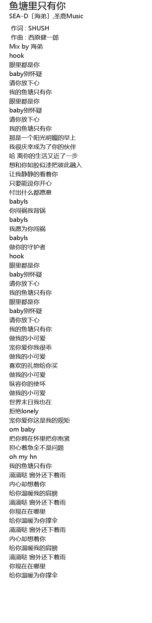 | [01:37.449] | wǒ de yú táng zhǐ yǒu nǐ |