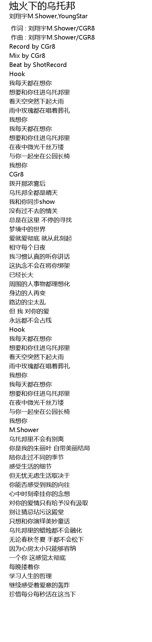 | [00:00.000] | 作词 : 刘翔宇M.Shower/CGR8 |