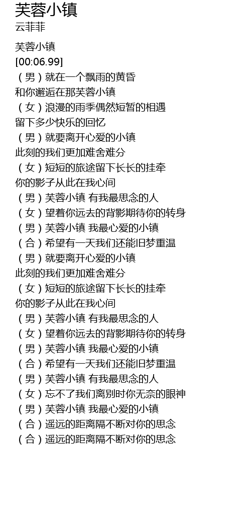 | [00:34.19] | 和你邂逅在那芙蓉小镇 |