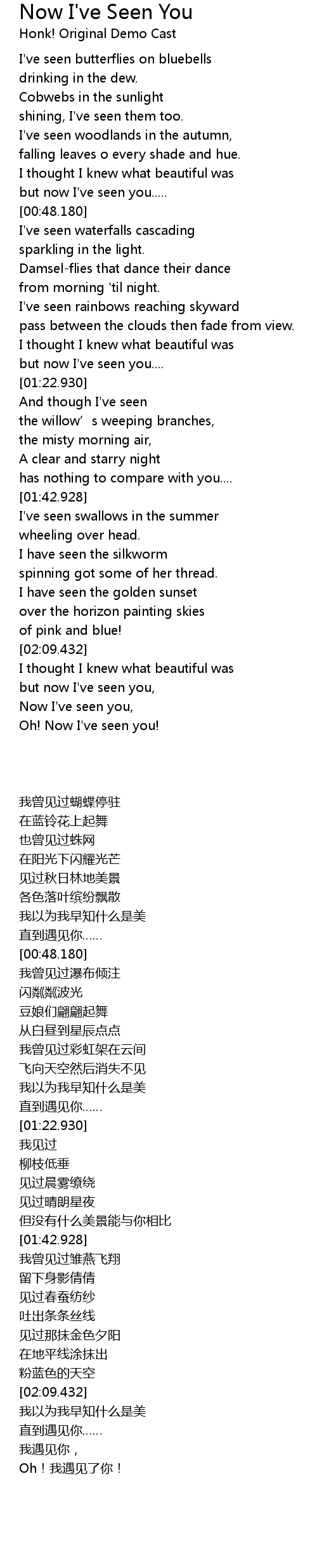 | [00:09.180] | I' ve seen butterflies on bluebells |