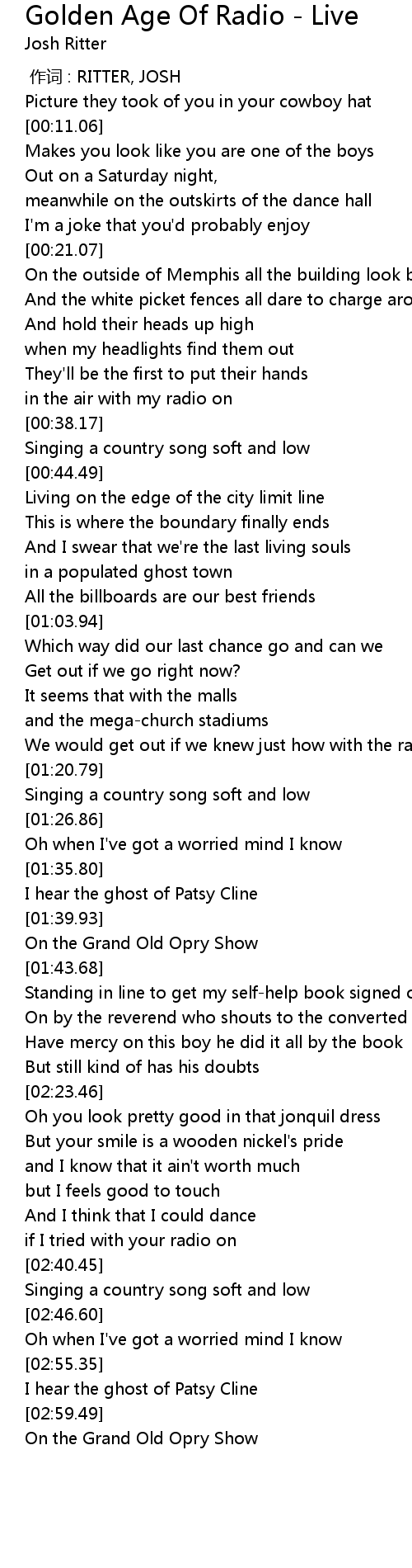 | [00:00.00] | zuò cí : RITTER, JOSH |