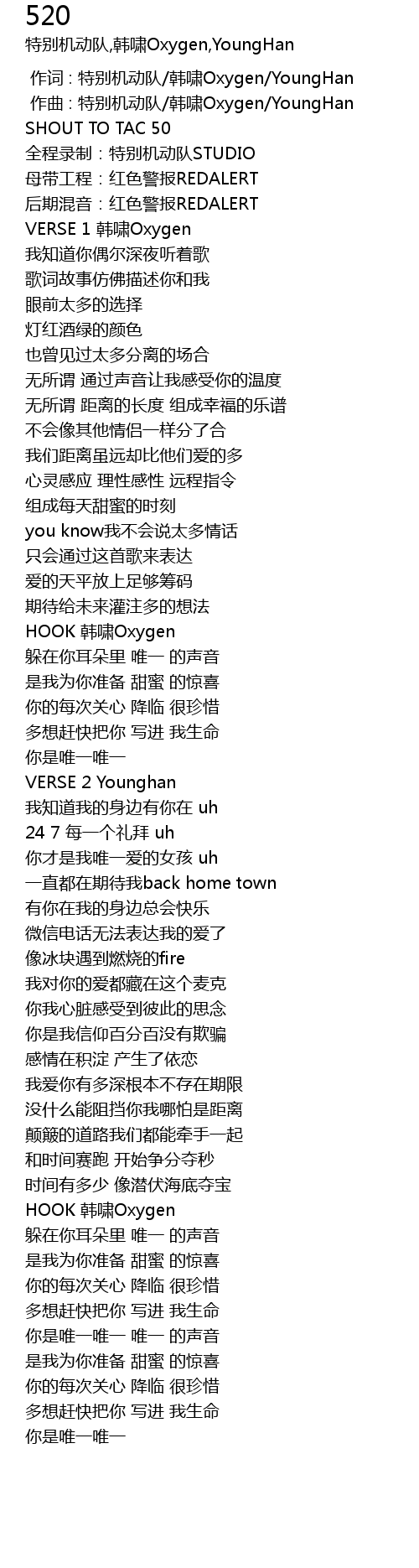 | [00:00.000] | 作词 : 特别机动队/韩啸Oxygen/YoungHan |