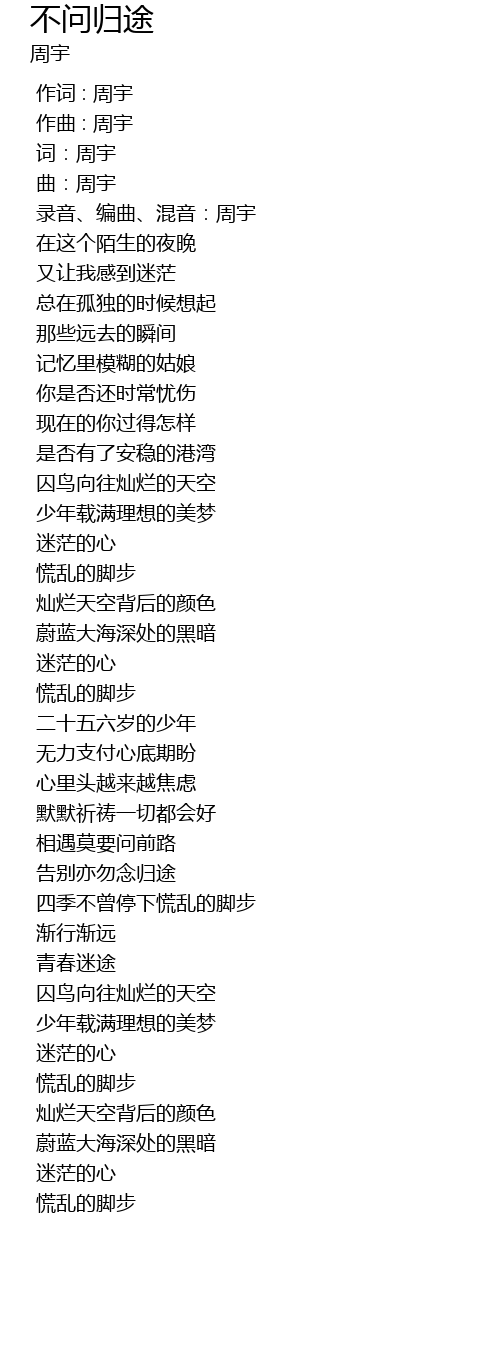 | [00:00.000] | 作词 : 周宇 |