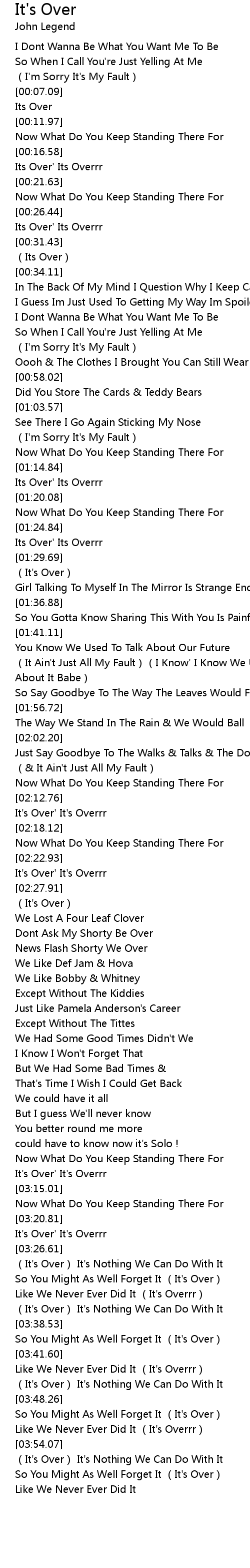 | [00:17.59] | Its Over' Its Overrr |