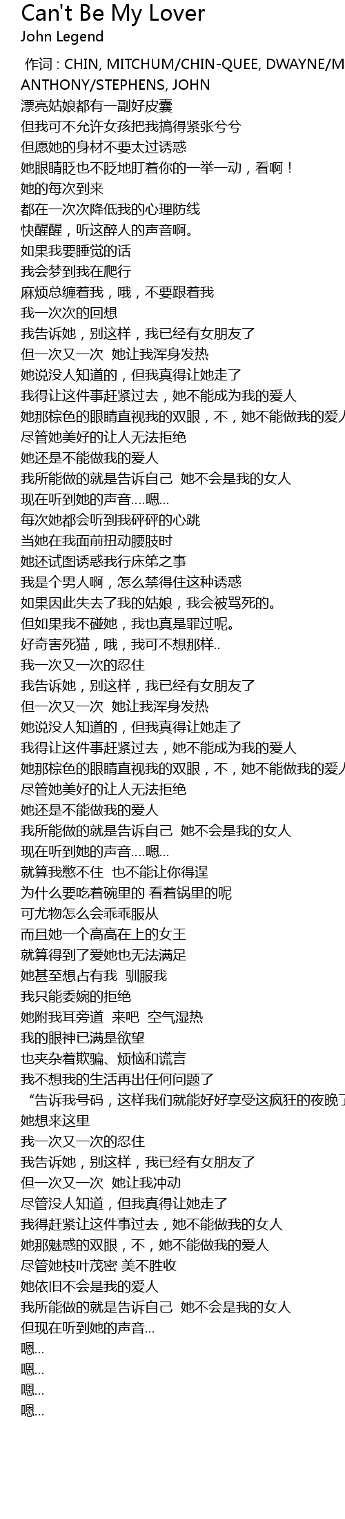 | [00:00.00] | 作词 : CHIN, MITCHUM/CHIN-QUEE, DWAYNE/MYRIE, MARK ANTHONY/STEPHENS, JOHN |