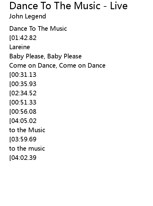 | [04:09.88][03:59.69][03:49.63][03:39.44][03:29.58][03:19.89][03:09.28][01:35.80][01:25.68][01:15.79] | Dance to the music |