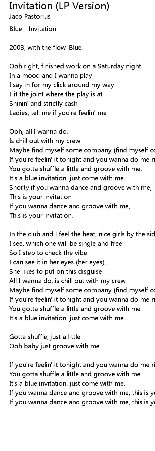It's a blue invitation, just come with me. |