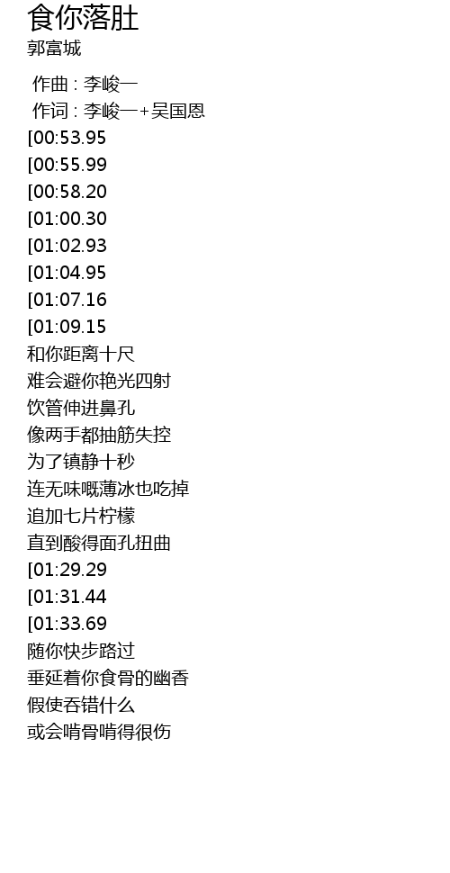 | [02:09.13][01:33.69][00:49.31] | 你似是最动人蜜饯为何辣到上舌尖 |