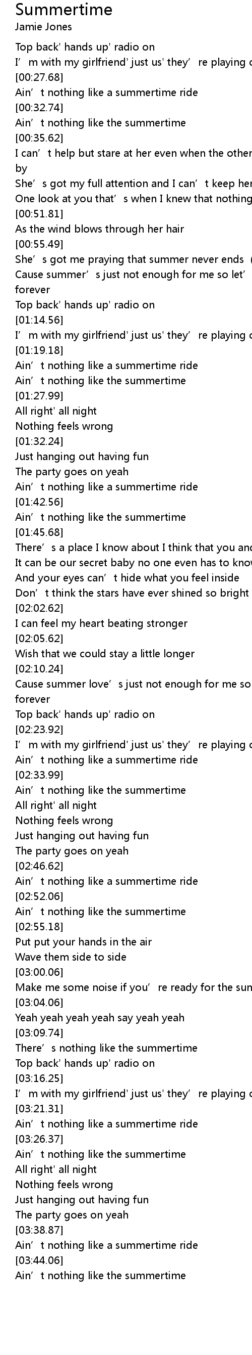 | [01:37.18] | Ain' t nothing like a summertime ride |