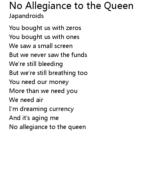 | No allegiance to the queen |