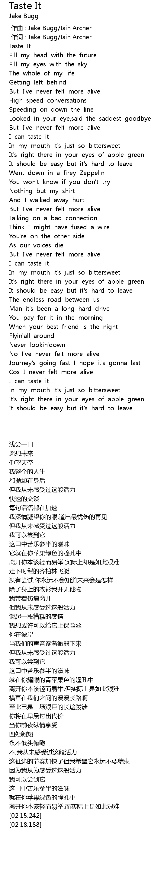 | [02:01.640] | In my mouth it' s just so bittersweet |
