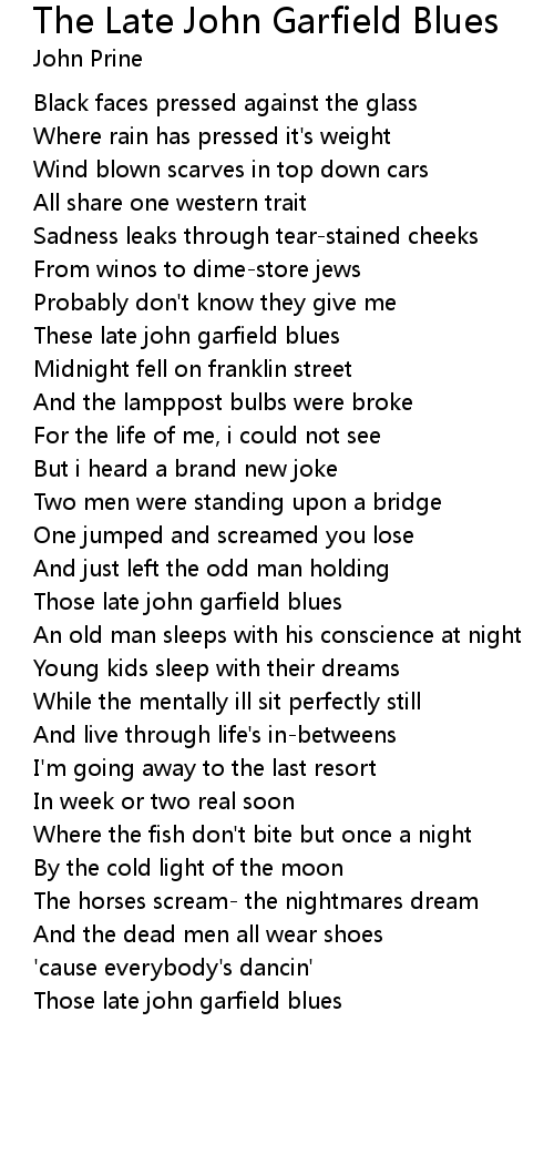 The Late John Garfield Blues Lyrics
