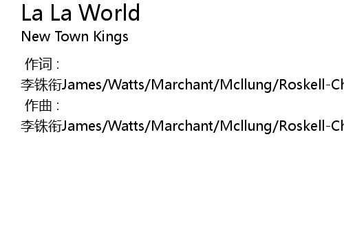 | [00:00.000] | 作词 : 李铢衔James/Watts/Marchant/Mcllung/Roskell-Cheale/Maynard/Band |
