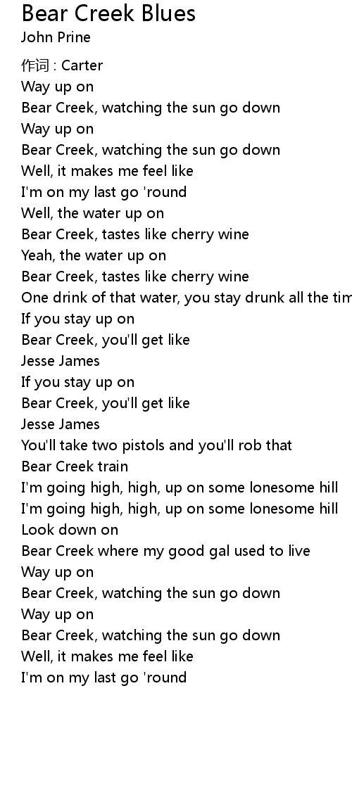 | Bear Creek where my good gal used to live | |