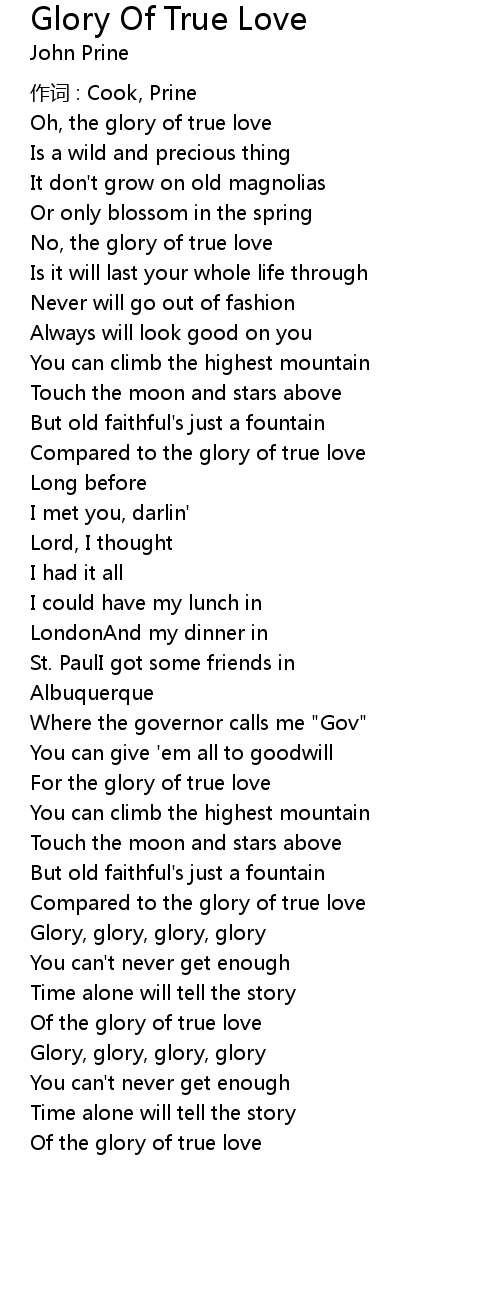 | Of the glory of true love |