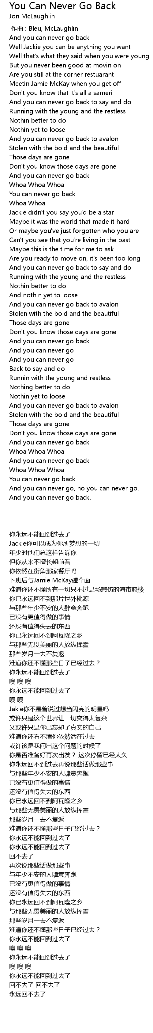| Song | You Can Never Go Back |