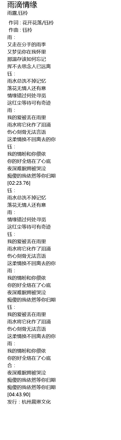 | [04:45.43] | 发行:杭州晨琳文化 |