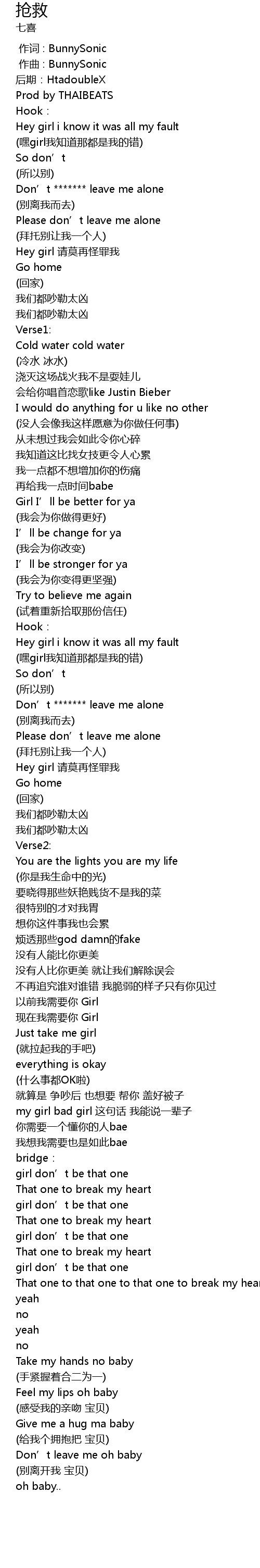 | [01:46.333] | Hey girl qǐng mò zài guài zuì wǒ |