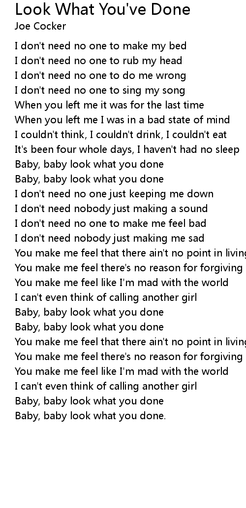 Baby, baby look what you done. |