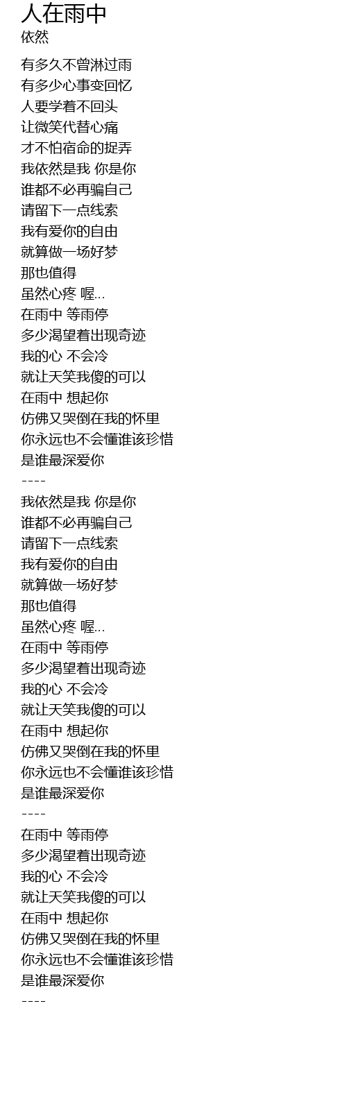 | wǒ yī rán shì wǒ nǐ shì nǐ | |