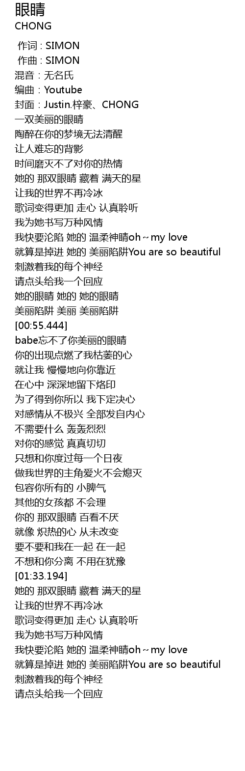 | [00:58.944] | babe忘不了你美丽的眼睛 |