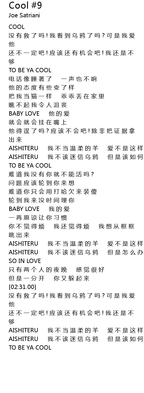 | [03:03.00] | méi yǒu jiù le ma ! wǒ kàn dào wū yā le ma ? kě shì wǒ ài tā |