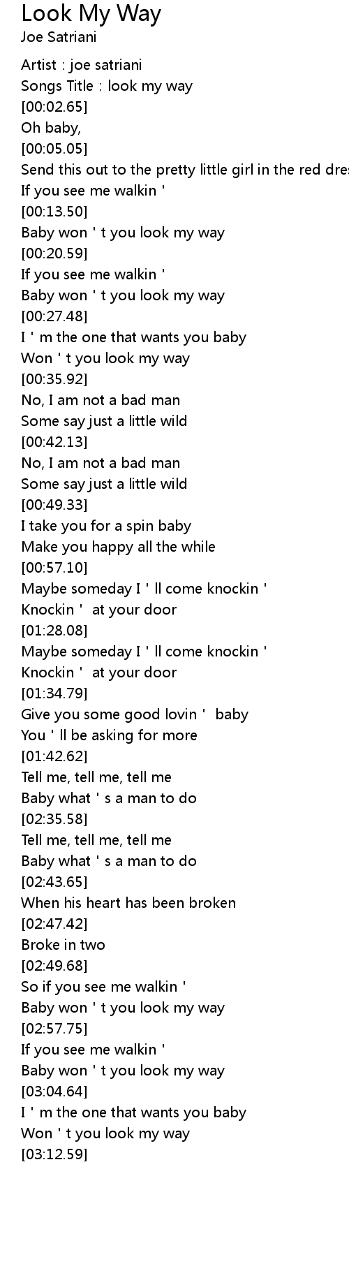 | [03:02.35] | Baby won t you look my way |