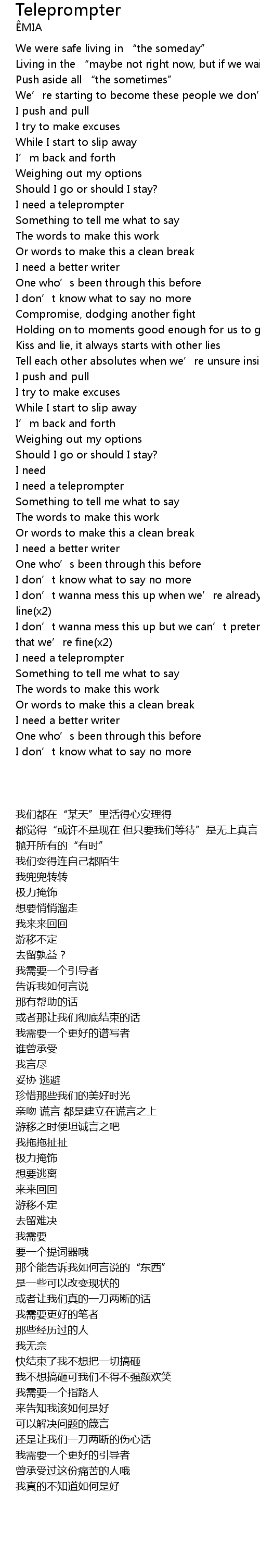 | Song | Teleprompter |