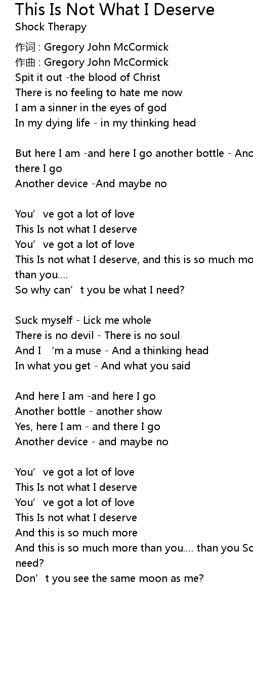 | This Is not what I deserve, and this is so much more, and this is so much more than you. | |
