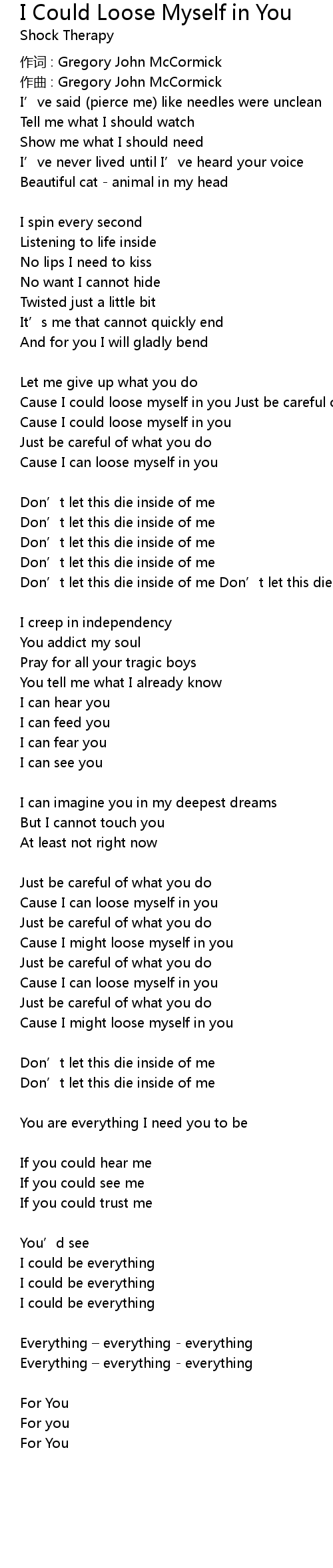 | Cause I might loose myself in you | |