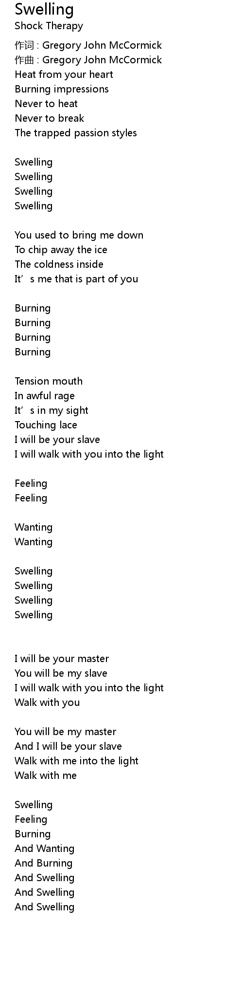 | Song | Swelling |