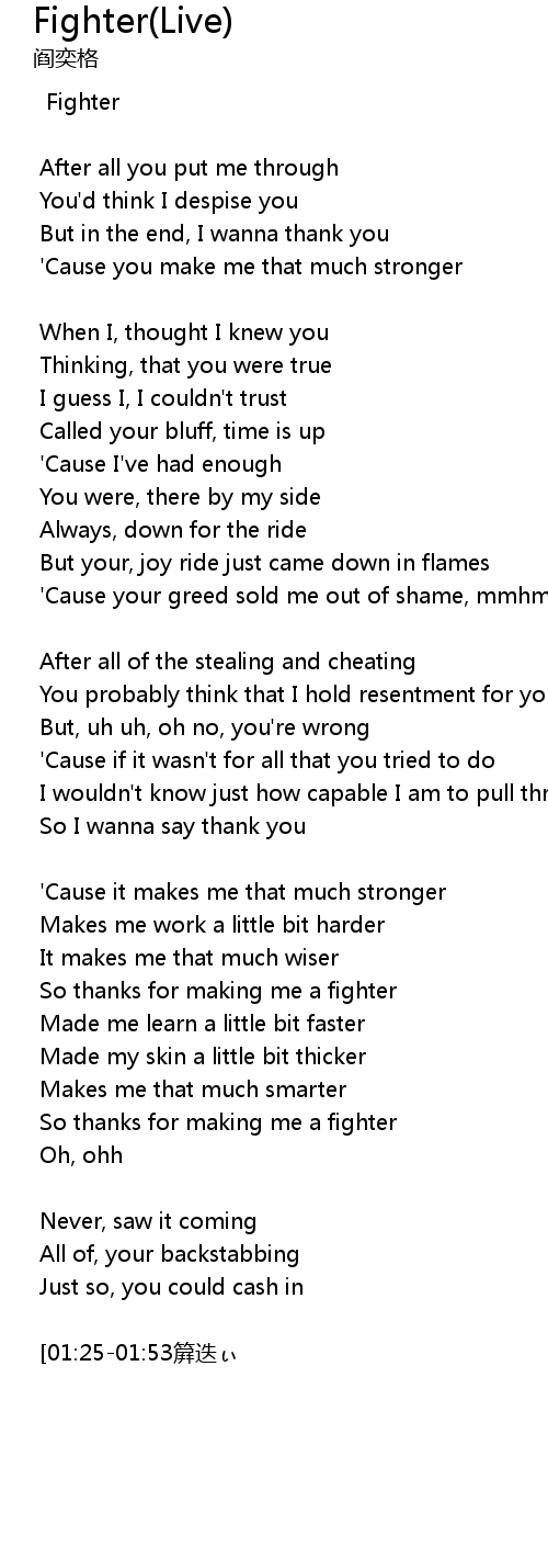 | So thanks for making me a fighter | |