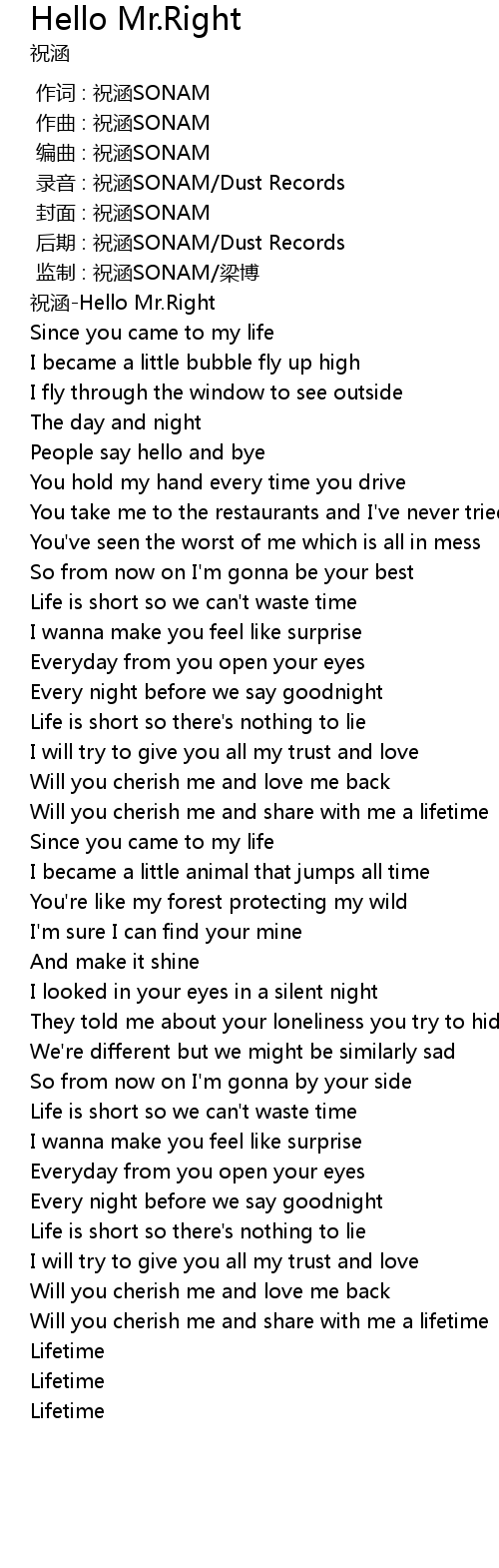 | [00:00.360] | 祝涵-Hello Mr.Right |